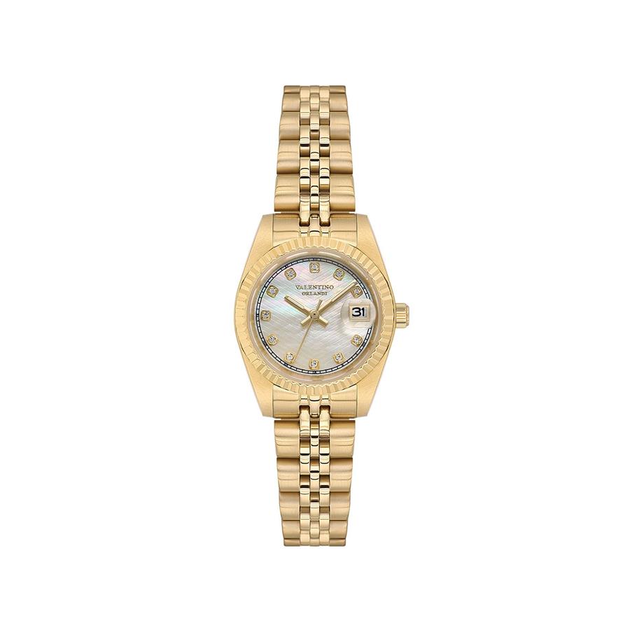 Valentino Orlandi kadın kol saati, 26 mm kasa çapı, çelik kordon, 3 Atm su geçirmezlik, mineral cam, vx82 mekanizma özelliklerine sahip şık ve kaliteli saat modeli.